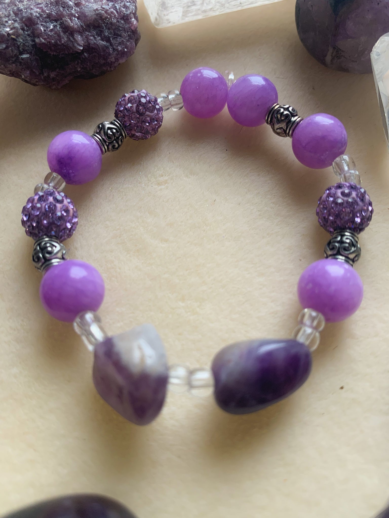 Purple Jadeite: the stone of good health and prosperity process and avoiding over stimulation. Absorbs negative energies and calms the mind
